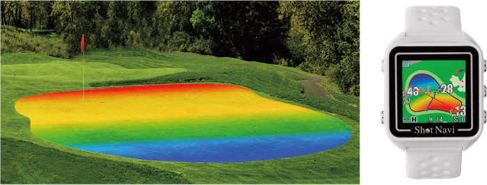 グリーンを狙うショットの際に、どこに落とせばパットが打ちやすいかを事前シミュレーションできます。