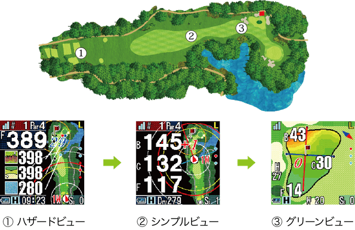 〇主な機能 : フェアウェイナビ、Green Eye、オートメジャー、