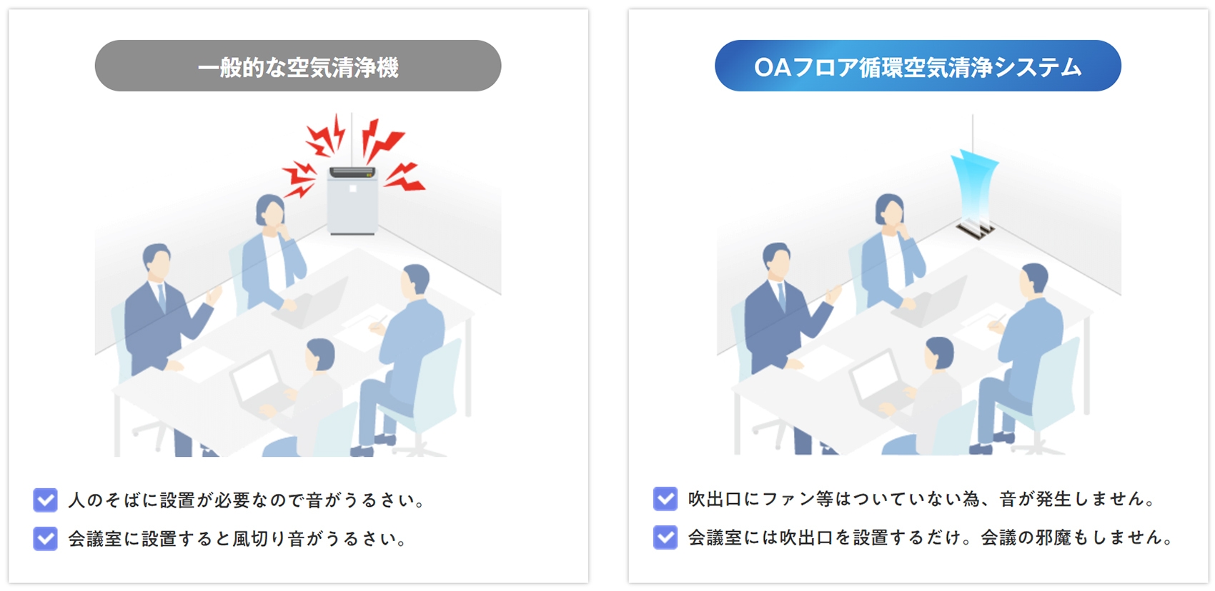 1台で複数の部屋を空気清浄できる新しい空気清浄システム 「OAフロア循環空気清浄システム」を10月より販売開始