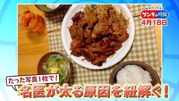 あなたのお腹はなぜひっこまないのか?写真一枚で太る原因まるわかり!?肥満治療の名医が解決策を伝授!先生オススメの運動もご紹介!4月18日(日)あさ7:00放送『健康カプセル!ゲンキの時間』