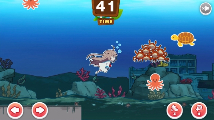 ゲームではアトリが様々な海の生き物を乗り越えながら時間内にゴールを目指します。今回プレーヤーは泳ぐアトリを操作し、最速でゴールをしてハイスコ