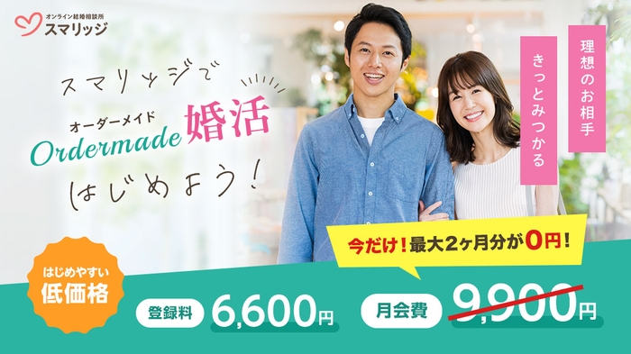 SE ホールディングス・アンド・インキュベーションズ株式会社(証券コード:9478)の連結子会社である SE モバイル・アンド・オンライン株式会社(本社:東京都新宿区、代表取締役:伊藤 文彦)は、オンライン婚活支援サービス「はじめる婚活 まじめな出逢い 『スマリッジ』」において、新規会員登録者向けに「月会費」が無料になるキャンペーンを実施いたします。