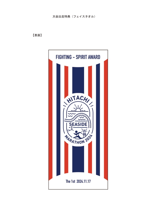 ひたちシーサイドマラソンでは、出走特典として、大会当日に出走されたランナーにフェイスタオルを配布します!