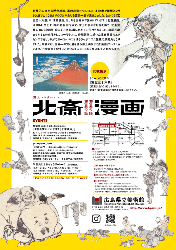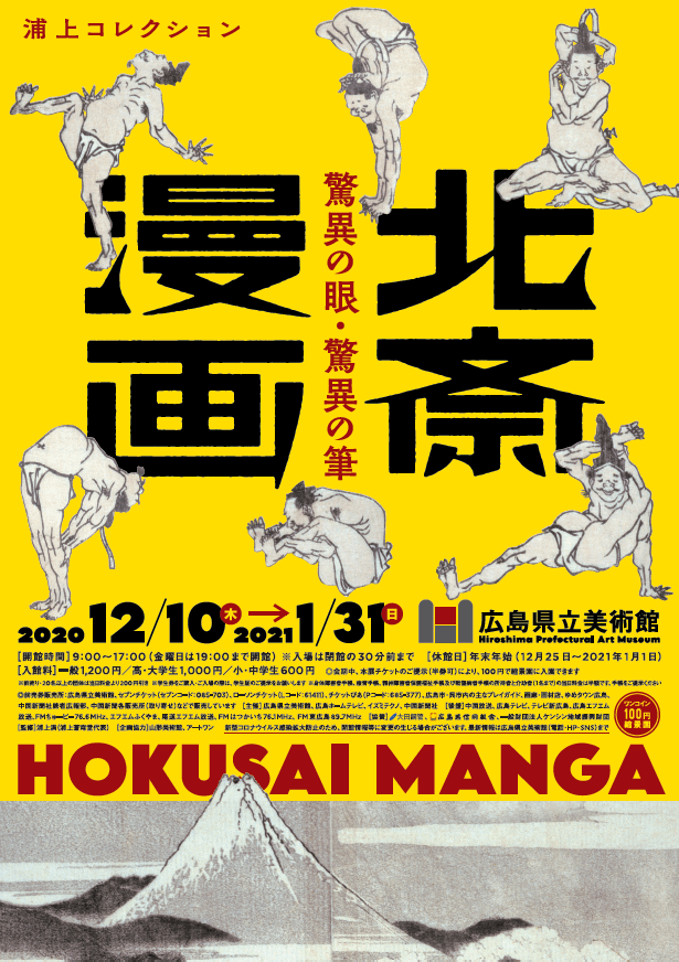 本展は、世界一の質と量を誇る浦上氏の『北斎漫画』コレクションから200余点を厳選し,『冨嶽三十六景』とも比較展示しながら『北斎漫画』の魅力を紹介します。