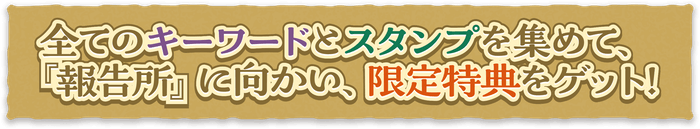 すべてのキーワードとスタンプを集めて「報告所」へ行くと特典がもらえます。