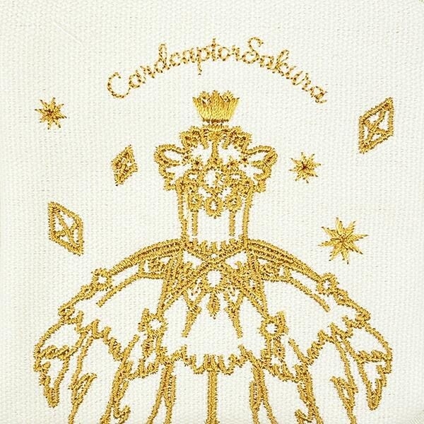 近くで見た質感はこんな感じのようですね。さくらちゃんのコスチューム部分は、細かな刺繍で丁寧に表現されていて、繊細さと高級感がしっかり伝わってきます。ファンにはたまらないディテールへのこだわりが光る、特別感のあるポーチです。