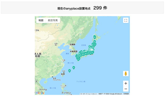 詳細はanyplaceパスポート設置地点一覧をご覧ください(https://anyplace.jp/anyplace_location/)