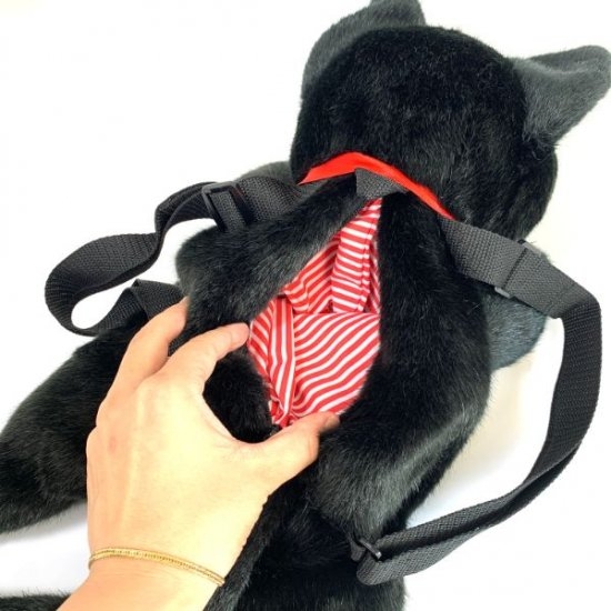 ピンとした大きめのお耳にまんまるのおめめ、長いしっぽも付いたクオリティの高いジジのリュックです。トレードマークの赤いリボンも可愛いですよね。ヒモの部分さえ隠してしまえば、ぬいぐるみにしか見えません。