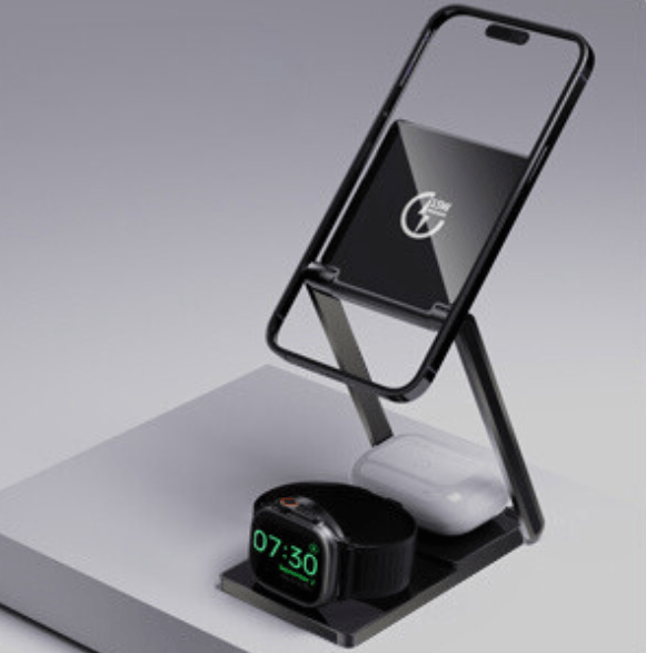 スマホだけを充電したいときは折りたたんで使用でき、3ガジェット同時に充電したいときは、まるでスマホスタンドのようにスタイリッシュに充電してくれます。
