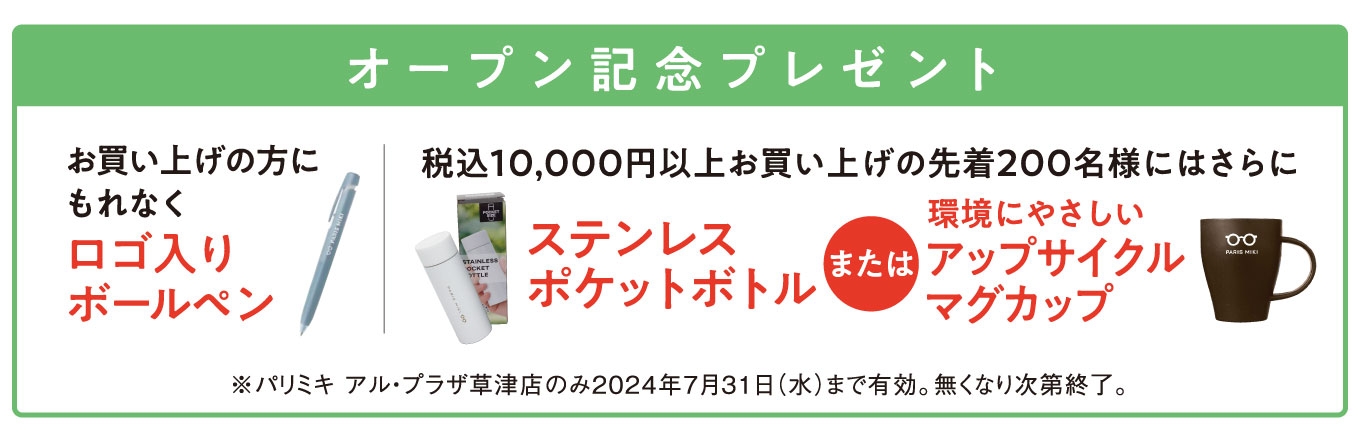 ※パリミキ アル・プラザ草津店のみ、2024年7月31日(水)まで