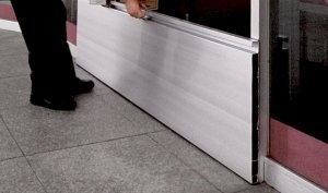 『ワンタッチボード』はマグネット付アルミ製パネルを、出入口の支柱に磁力でワンタッチに取り付けるので、スピーディーかつ簡単です。
