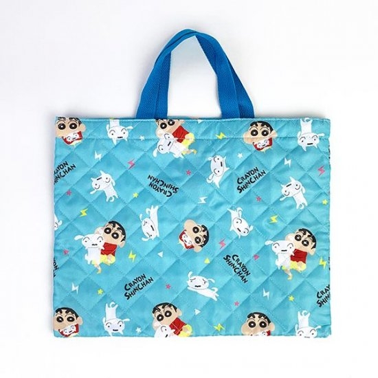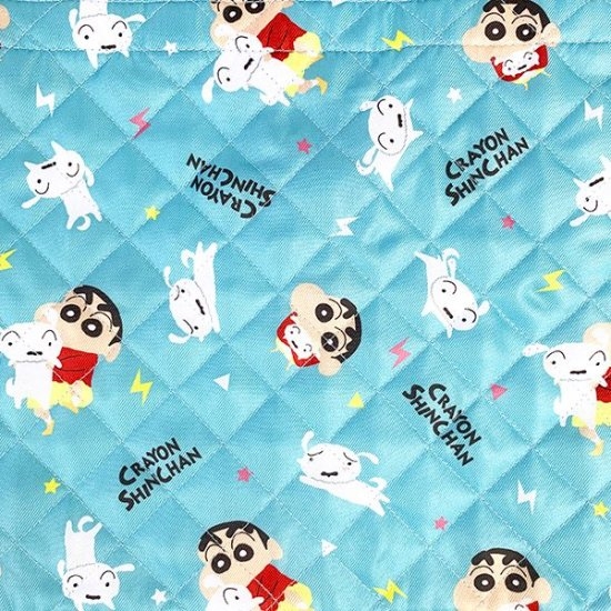 ブルーの爽やかなカラーに、キュートなしんちゃんとシロのイラストが総柄になっています。