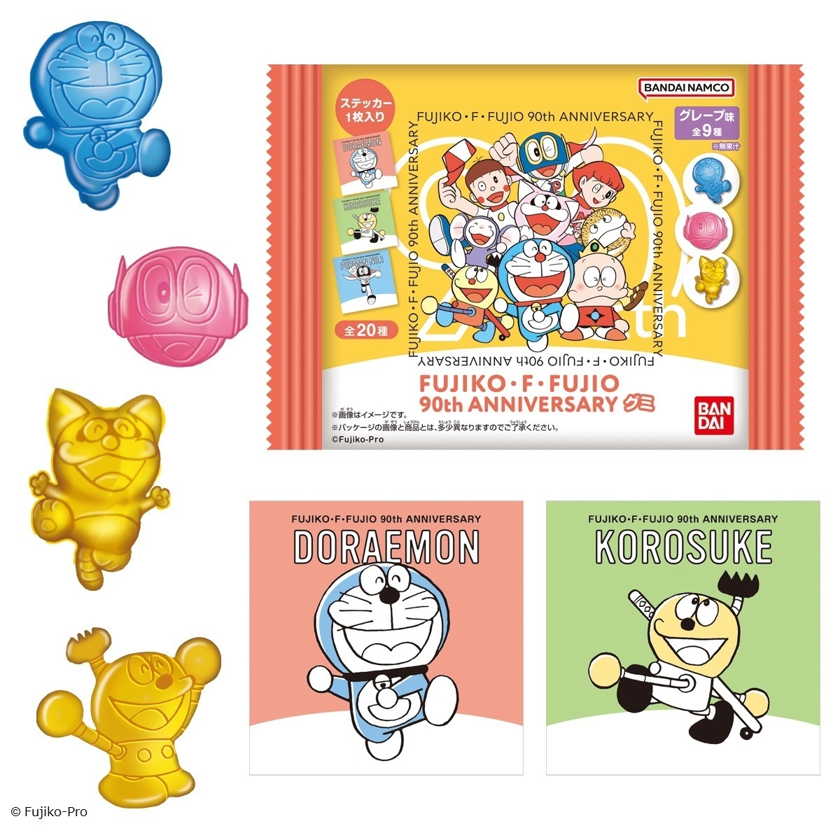 藤子・F・不二雄生誕90周年記念! 藤子・F・不二雄キャラクター達の 記念アートステッカーが付属したグミ発売