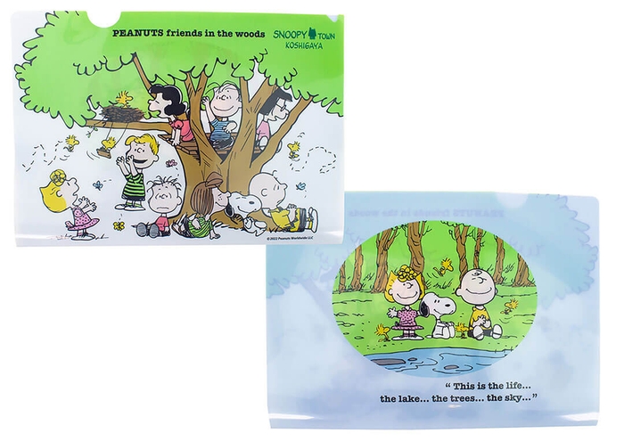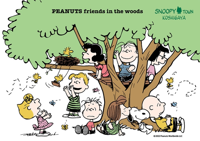 また越谷レイクタウン店限定オリジナル商品のテーマは「PEANUTS friends in the woods」 。PEANUTSの仲間たちが、大きな木の下で楽しく、くつろぐシーンをデザインしました。