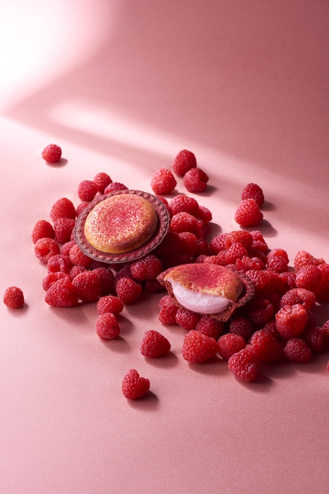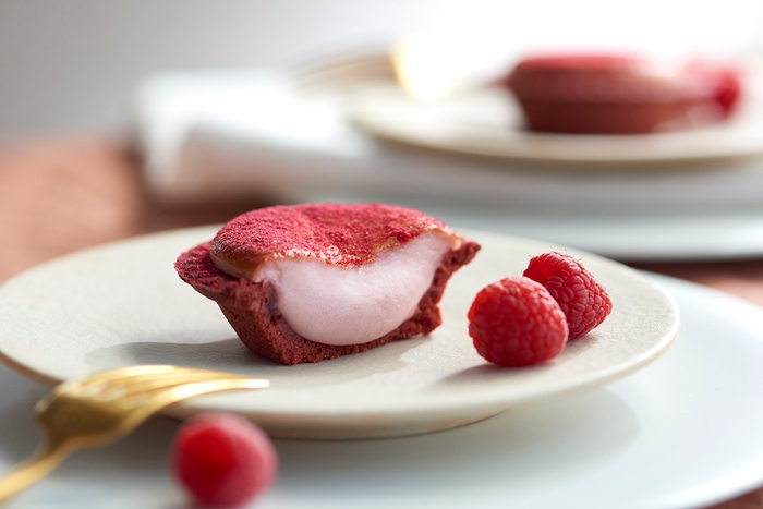 トッピングには、フランボワーズを凍結乾燥した、添加物や砂糖を含まないピュアなフルーツパウダーを使用。フランボワーズの鮮やかな“レッド”と芳醇な風味が加わり、甘酸っぱさとほろ苦さのレイヤードが奥行のある味わいを引き立てています。