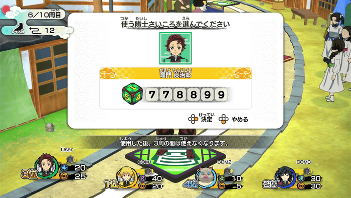 また、自分の隊士さいころ以外にも、途中で別の隊士が仲間になってくれれば、そのキャラクターの隊士さいころも使用できるようになります。