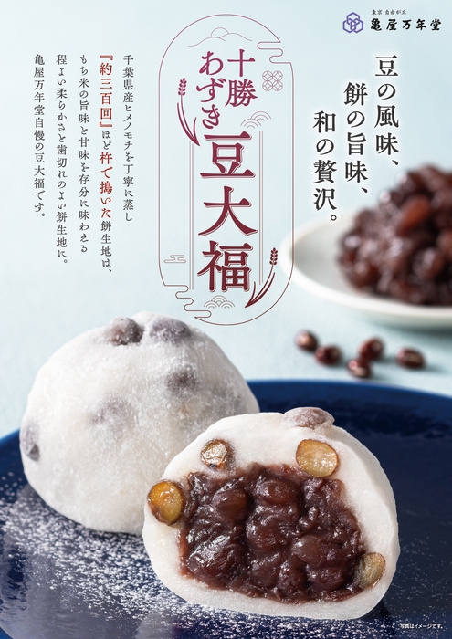 株式会社亀屋万年堂(本社・工場:神奈川県横浜市都筑区 / 総本店:東京都目黒区自由が丘)は、素材と製法に徹底的にこだわった新商品『十勝あずき豆大福』を、2025年4月24日(木)より直販店舗(東京・神奈川19店舗)にて通年販売いたします。