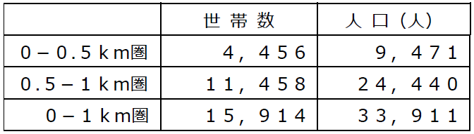 ・店舗から1㎞圏内は、単身世帯が40.5%、2人世帯が29.1%と少人数世帯が約7割を占めます。