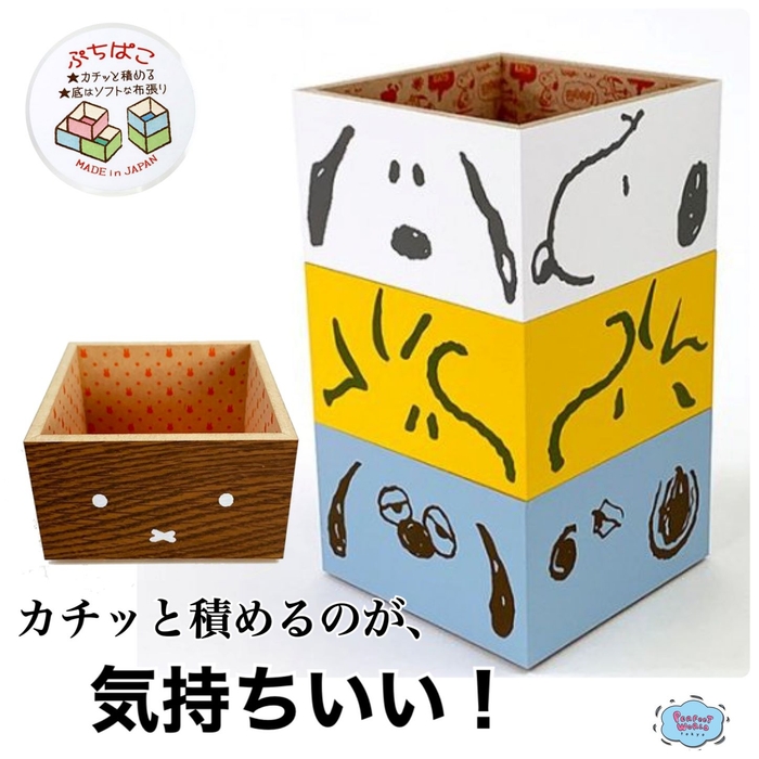 スヌーピーとミッフィーからご紹介するのは”ぷちぱこ”一見すると普通の小物入れですが、ぷちぱこ同士を積めばカチッとはまって気持ちいいアイテムです。もちろんデザイン抜かりなく♪キャラクターの魅力がギュギュっと詰まった”ぷちぱこ”をご覧ください。