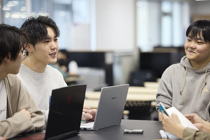 オモシロそうなことはなんでやってみたい…そんな意欲に満ちあふれたメンバーが集まって、小さなショップや小規模事業者のニーズに応えるICTのプラットフォームを構築したチーム「BenefiTech」をご紹介します。コンセプトは「誰かのために×テクノロジー」です。実社会のニーズを掘り起こしながら進めたこのプロジェクトの中で、メンバーたちは各人の学びや得意分野が化学反応を起こしていく体験をしています。限りなき可能性を秘めたこのプロジェクトの中心メンバーである情報工学部の村松侑さん、服部寛大さん、穴田晃輝さんにお話を聞きましょう。