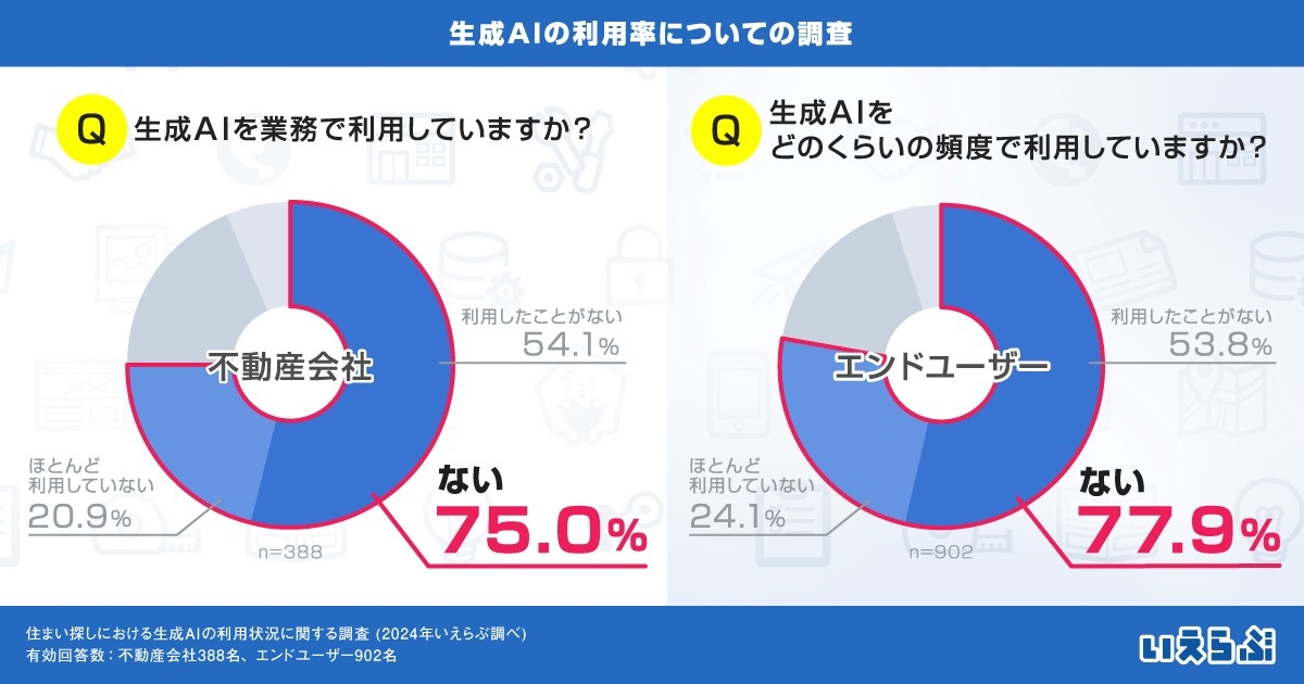 1.不動産会社とエンドユーザーの生成AI利用率、75%以上が利用していないと回答