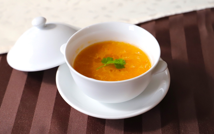 上海蟹の風味豊かな味噌と内子を組み合わせた贅沢なスープ。広東料理のスープのエッセンスと絶妙に調和します。
