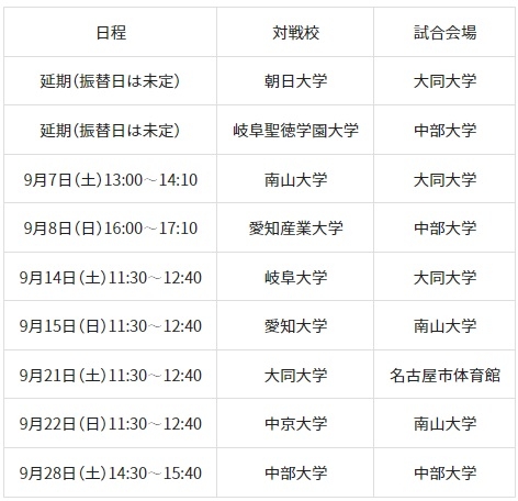※延期となった試合の振替日は未定のため、東海学生ハンドボール連盟HPでご確認ください