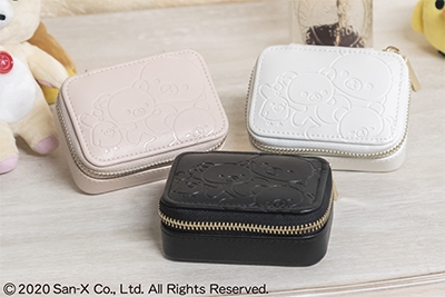 ちょっとしたパーティや旅行、アフターファイブのアクセサリーを持ち運ぶのに便利なサイズのジュエルケース。コンパクトながらも上質な作りで、内張りの起毛素材がアクセサリーを傷から守ってくれる本格アイテムです。表面にはリラックマを型押しして、大人の女性にも持って頂きやすいシンプルでお洒落なデザインに仕上げました。カラーはピンク、ブラック、ホワイトの3種類から選べます。ご自身用にはもちろん、リラックマ好きな方への贈り物にもおすすめです。