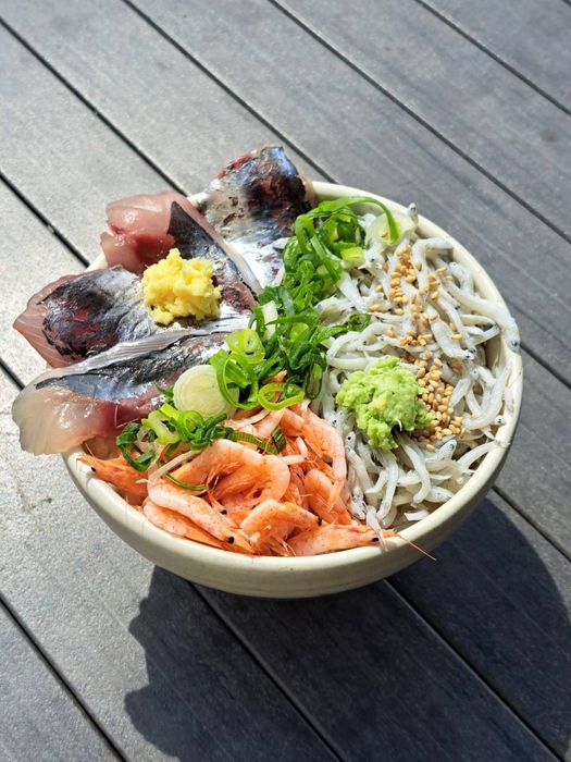 旬の鯵と静岡県産釜揚げしらす、釜揚げ桜えびが味わえる丼です
