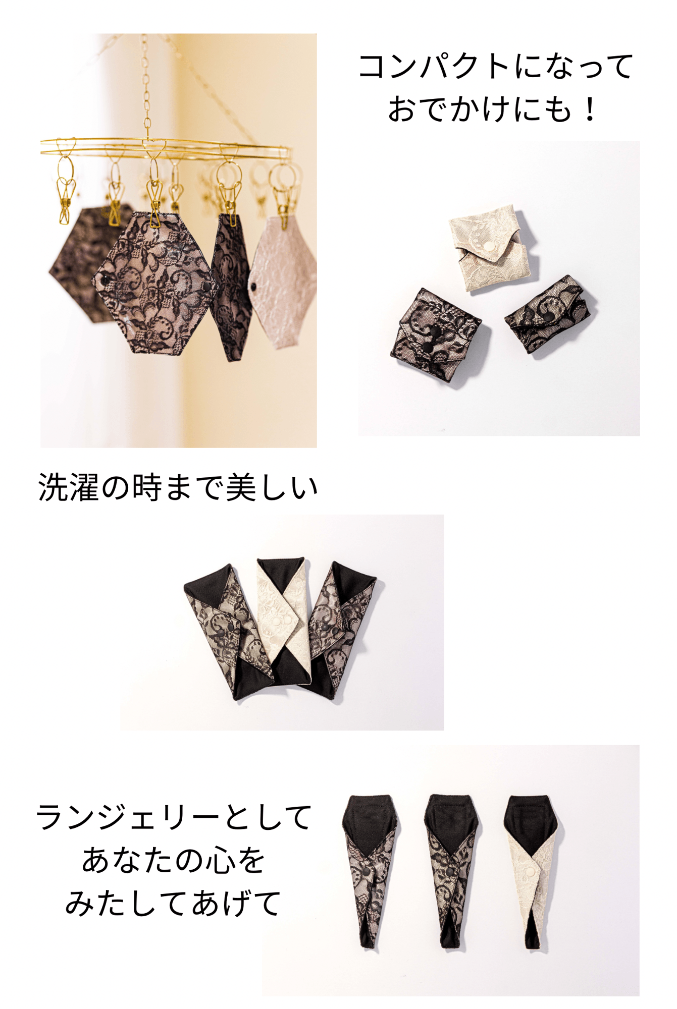 市販の布ライナーの多くは、実用性やコストを重視したものばかり。けれど私たちは、ランジェリーのように気分が上がること、そして “自分を整える時間” をくれるような存在であることが、これからのフェムケアには必要だと考えています。
