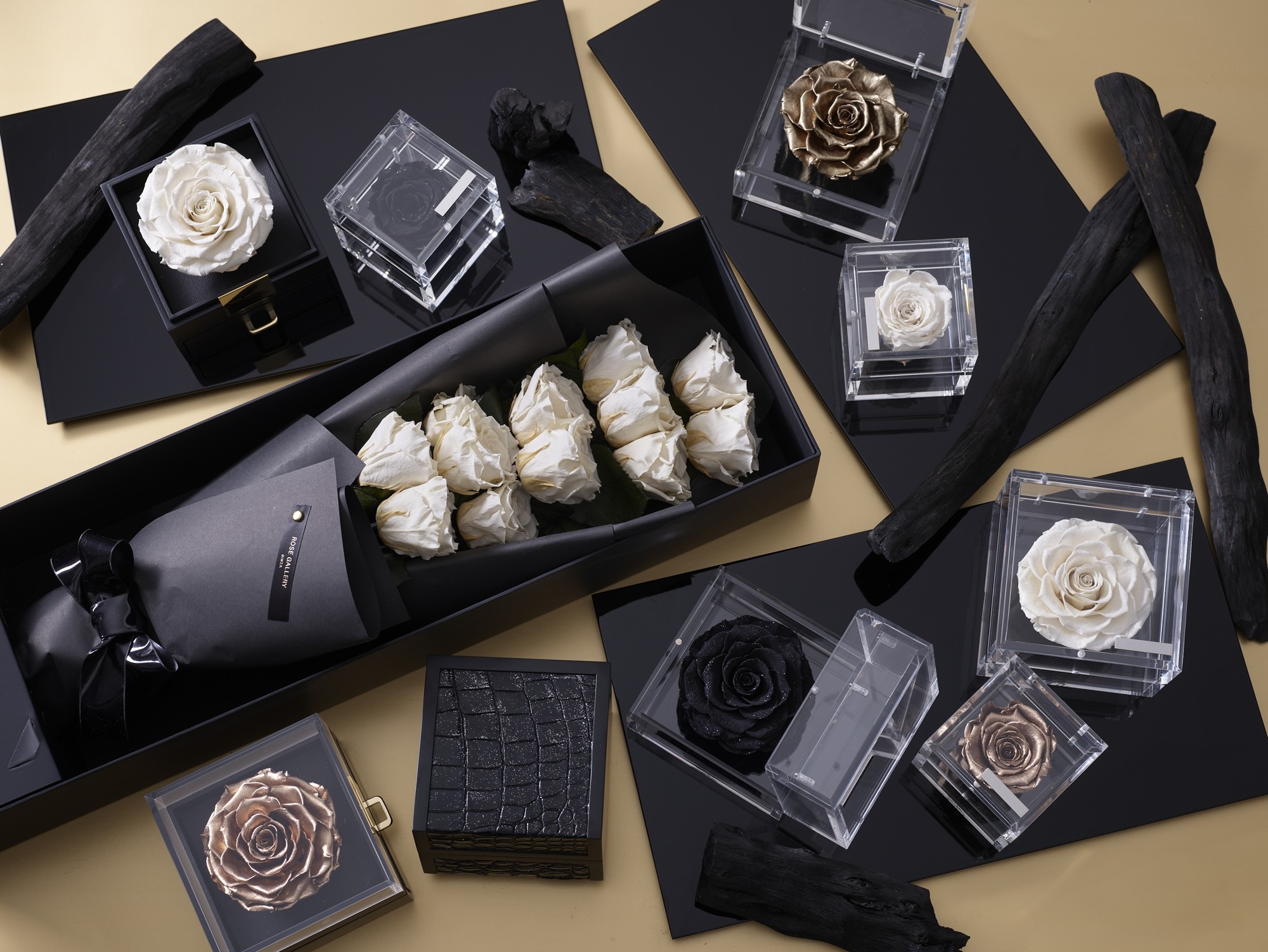 ROSE GALLERY は 1975 年に誕生した日本初の高級バラ専門店です。バラのある豊かなライフスタイルをご提案したい。そんな思いから ROSE GALLERY は生まれました。日々表情を変えるフレッシュローズのドラマティックな魅力。花びらの隅々まで磨き上げたタイムレスローズ(プリザーブドローズ)の丹精な魅力。ROSE GALLERY は契約農家による高品質なバラにこだわり、美しい咲き姿と薫り高く長く楽しめる上質なバラを一本一本大切にお届けしています。お誕生日や記念日、プロポーズなど人生の物語、その特別な瞬間を、バラを通して彩るお手伝いをいたします。