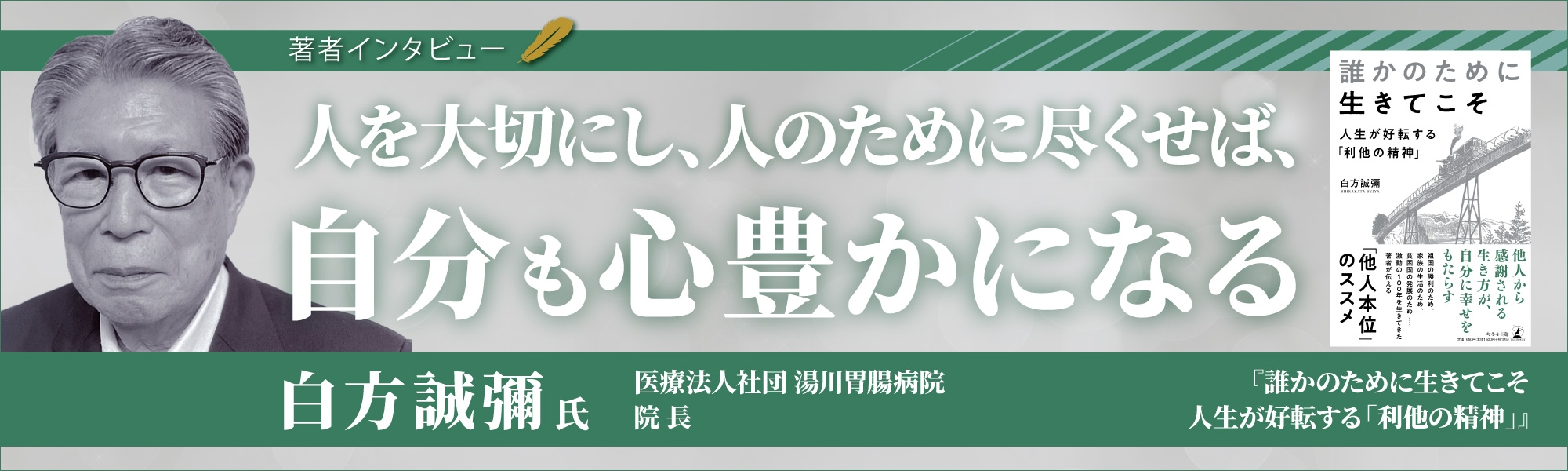 株式会社幻冬舎ゴールドオンライン(本社:東京都渋谷区千駄ケ谷4丁目9番7号、代表取締役:山下征孝)は、同社が運営する「話題の本.com」(https://wadainohon.com)にて2022年7月22日(金)、著書『誰かのために生きてこそ 人生が好転する「利他の精神』を刊行した、医療法人社団 湯川胃腸病院 院長 白方 誠彌/氏のインタビュー記事を公開しました。