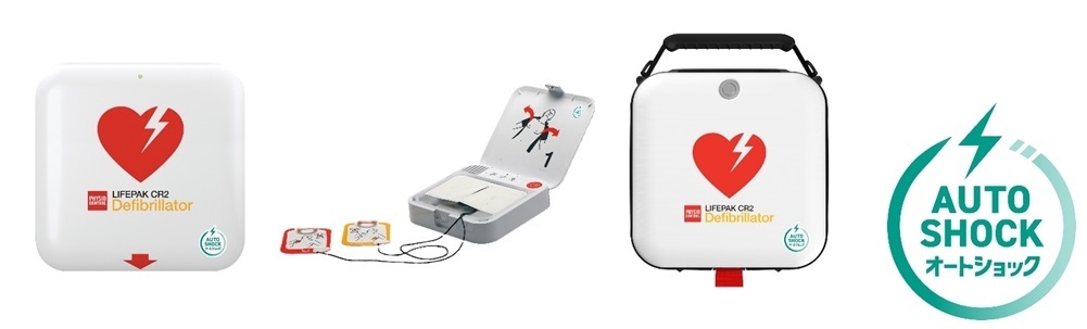 本体の蓋を開けてすぐに傷病者に装着できる「クイックステップ電極」を搭載するとともに、エネルギー出力が最大360ジュールまで漸増するよう設計され、迅速で効果的な除細動を提供します。 また、Wi-Fiを通じてクラウド上で傷病者データおよび製品の保守管理情報を一元管理できる機能や、外国語対応や未就学児モードへの切り替え、騒音下でも指示音声を聞き取りやすいクリアボイステクノロジーなど多岐にわたる機能を備えています。 特に「ライフパックCR2 オートショック」は、これらに加えてオートショック機能を装備した製品です。