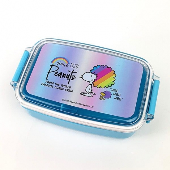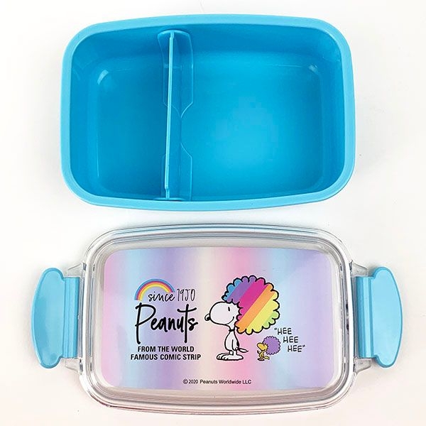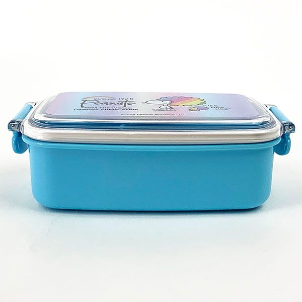 こちらは一段タイプのランチボックスです。ビビッドなライトブルーが爽やかで、フタにはアフロのスヌーピーが♪