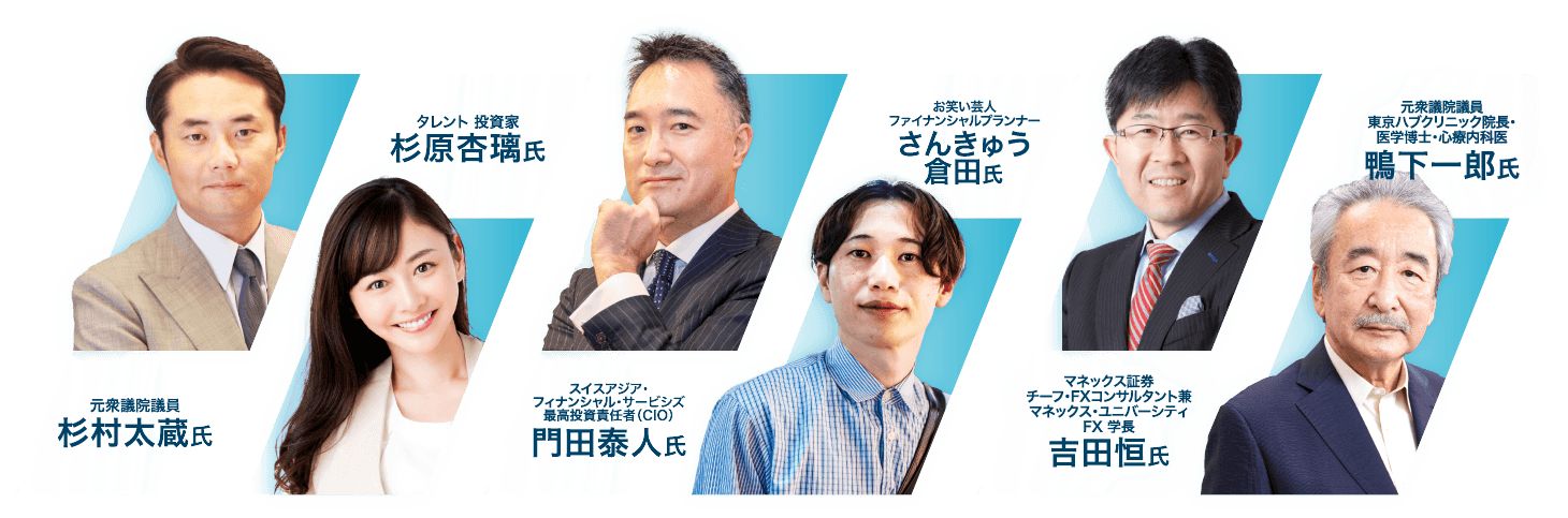 杉村太蔵氏、杉原杏璃氏、鴨下一郎氏など、メディアでも注目されている講師が登壇し、資産防衛や資産運用などさまざまなテーマで講演します。