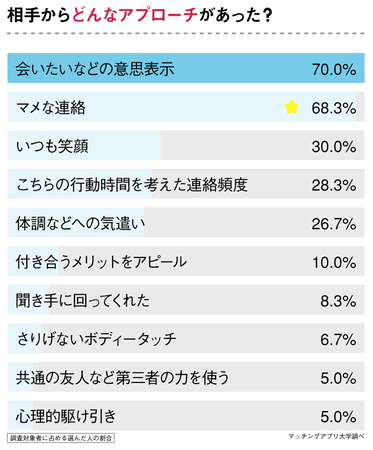 自分からして有効だったと思うアプローチ1位は「マメな連絡」
