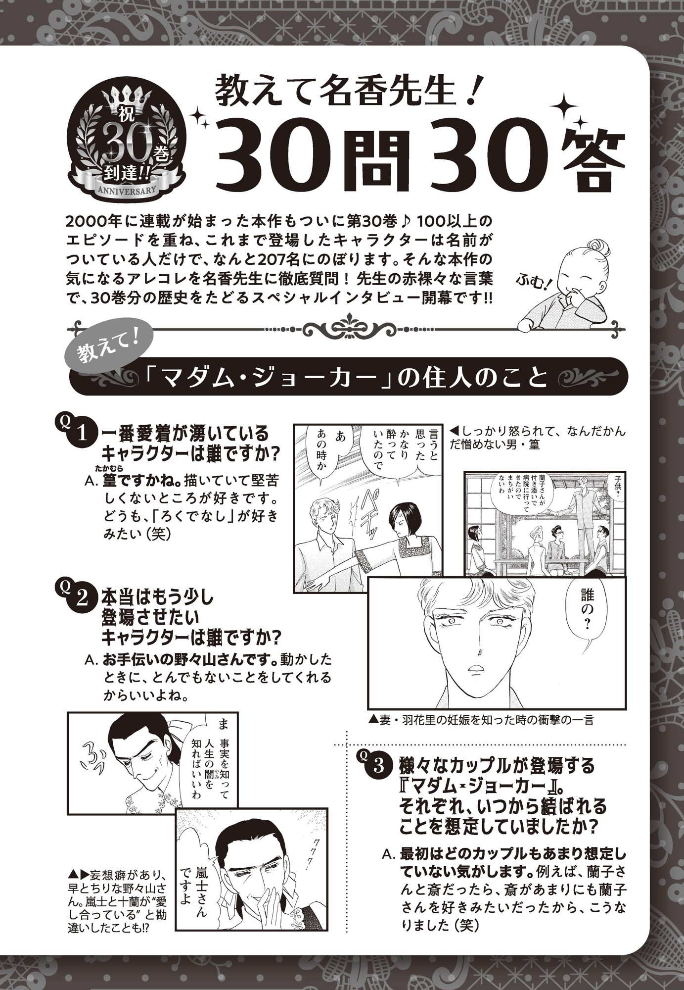 30巻目の大発見! 先生の赤裸々な言葉で語られる『マダム・ジョーカー』の秘密!! お気に入りのキャラクターは、まさかの…。