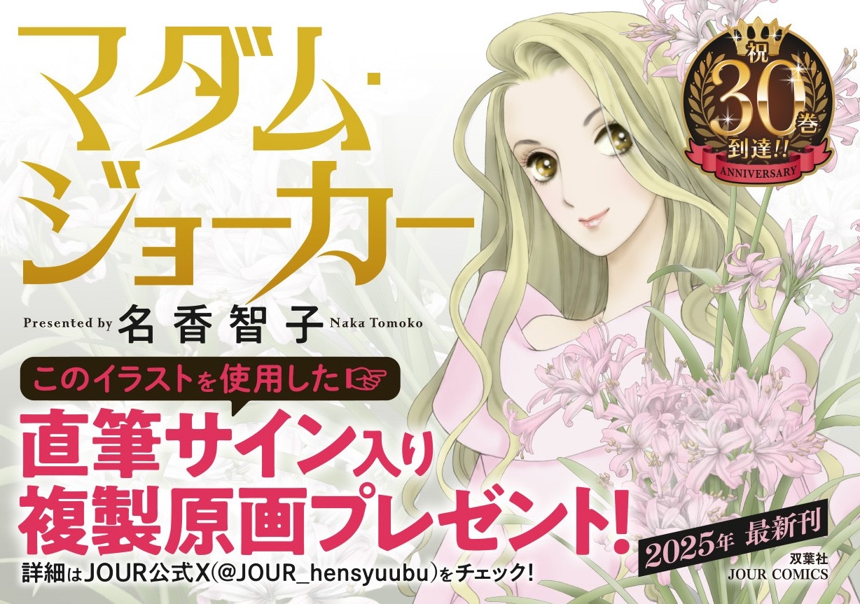 双葉社JOUR編集部公式Xアカウント(@JOUR_hensyuubu)では名香智子先生の直筆サイン入り複製原画が当たるキャンペーン、電子ストアでは『マダム・ジョーカー』だけでなく名香智子双葉社作品が対象の大量値引きキャンペーンを実施!