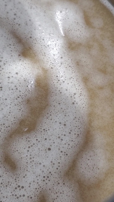 ④次に準備するのは、蜂蜜の糖をアルコールに変えてくれる酵母です。酵母は眠っている状態なので、ぬるま湯に加え酵母に活力を与えます。同時に美味しい蜂蜜酒を造ってくれるように念を送ります(大事)。酵母はしばらく置いておくと、ぷくぷくと泡を出してどんどん元気になっていきます。