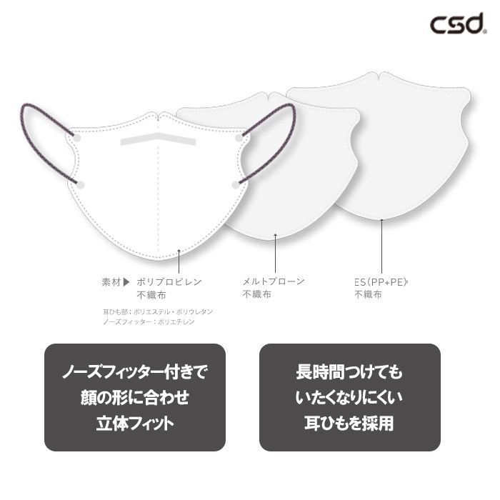 台湾発 大手医療消耗品メーカー『csd』から待望の 「3Dホワイトマスク」がオシャレなバイカラーの耳ひもで登場! 2022年10月末発売