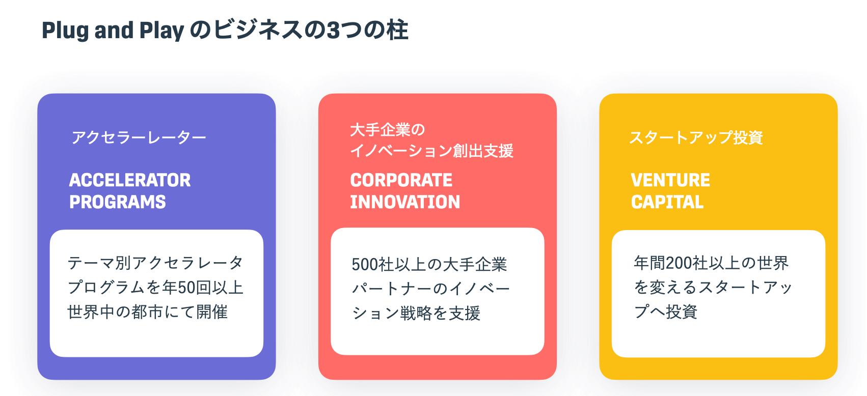Plug and Play Japanは、世界トップレベルのアクセラレーター/ベンチャーキャピタルです。