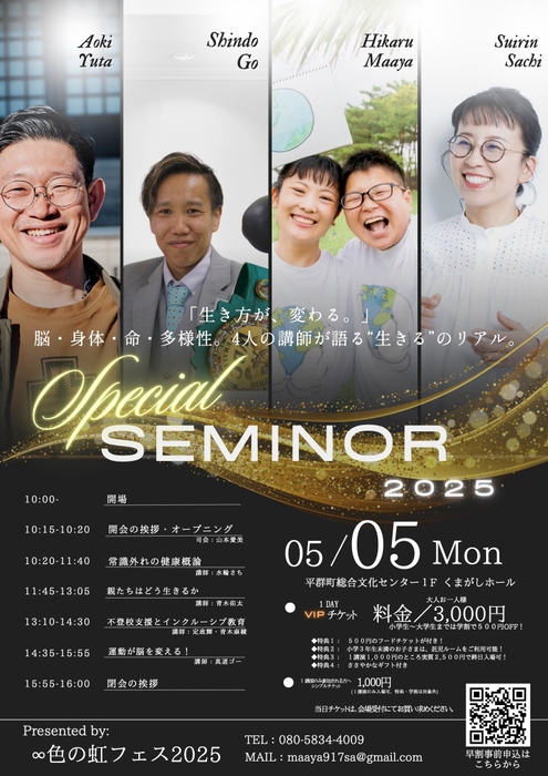 また、「∞色の虹フェス」の開催にあわせて、スペシャルセミナーも開催予定です。奮ってのご参加をお待ちしております。