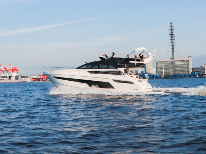 当日は、英国フェアライン社製の「スコードロン50」と「フェアライン33」の2艇を運航予定。スコードロン50は全長15m超のラグジュアリークルーザーで、フライブリッジや広々としたサロンを完備。フェアライン33はスタイリッシュなスポーツクルーザーで、デッキからの臨場感あふれる花火を体感できることが魅力です。いずれの船も見晴らし抜群のデッキを備えており、混雑を気にせずゆったりと花火を観賞できます。