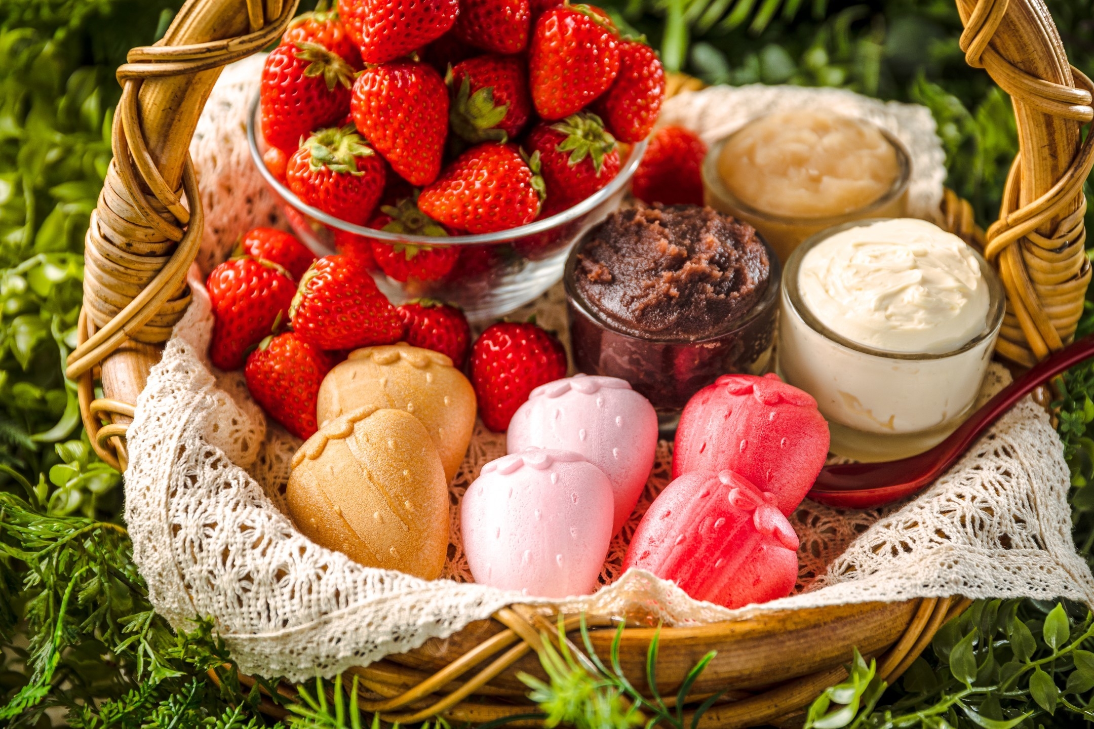苺の形をした3色の“いちごもなか”。