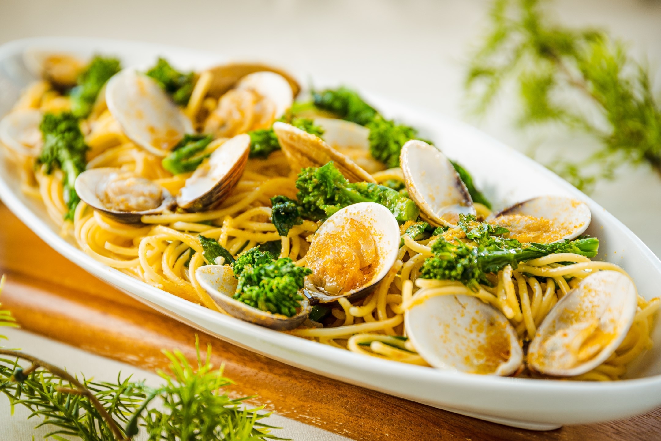 菜の花を使用した「蛤と菜の花のアーリオ・オーリオ 唐墨(からすみ)」など、春だからこそ愉しむことのできるメニューでご用意いたしました。