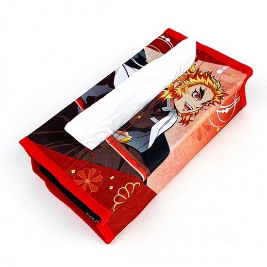 ということで、高いモチベーションで今日はますます人気の鬼滅の刃から、ボックスティッシュのカバーが登場しました!炭治郎・禰豆子・そして煉獄さんのキャラクターがデザインされた、布製のカバーです。身の回りにいつも置いておけるので、鬼滅の刃気分がアガりますね♪