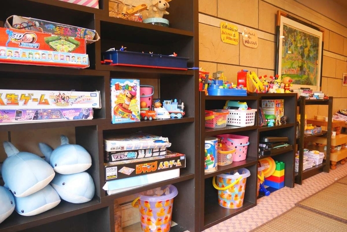館内設備:レストラン、おもちゃの貸し出し、宴会場、大浴場(天然温泉・サウナ付き)、プール(夏期のみ)、バーベキューガーデン、ライブラリー、コインランドリー
