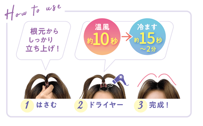 このクリップが登場したことで、どんな髪質、髪の長さの人でも簡単に前髪立ち上げができるようになりました。左右対称のクリップですので、前髪たちあげを左右対称に、同時にできるようになりました。
