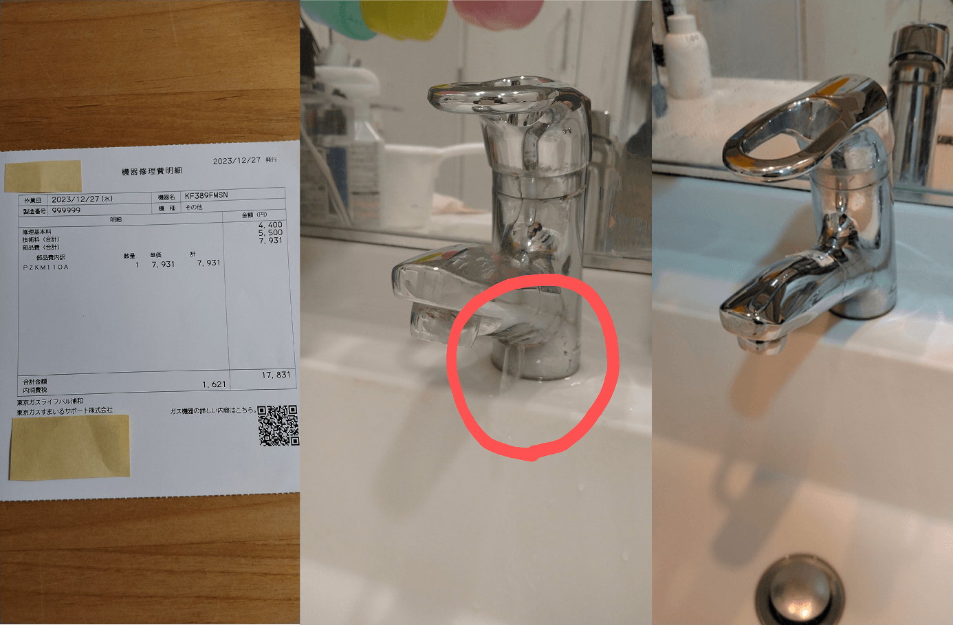 洗面所蛇口の修理事例