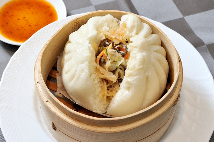 まずは、豚饅のジューシーな餡、柔らかな生地を堪能し、シビ辛ソースで味の変化をお楽しみください。
